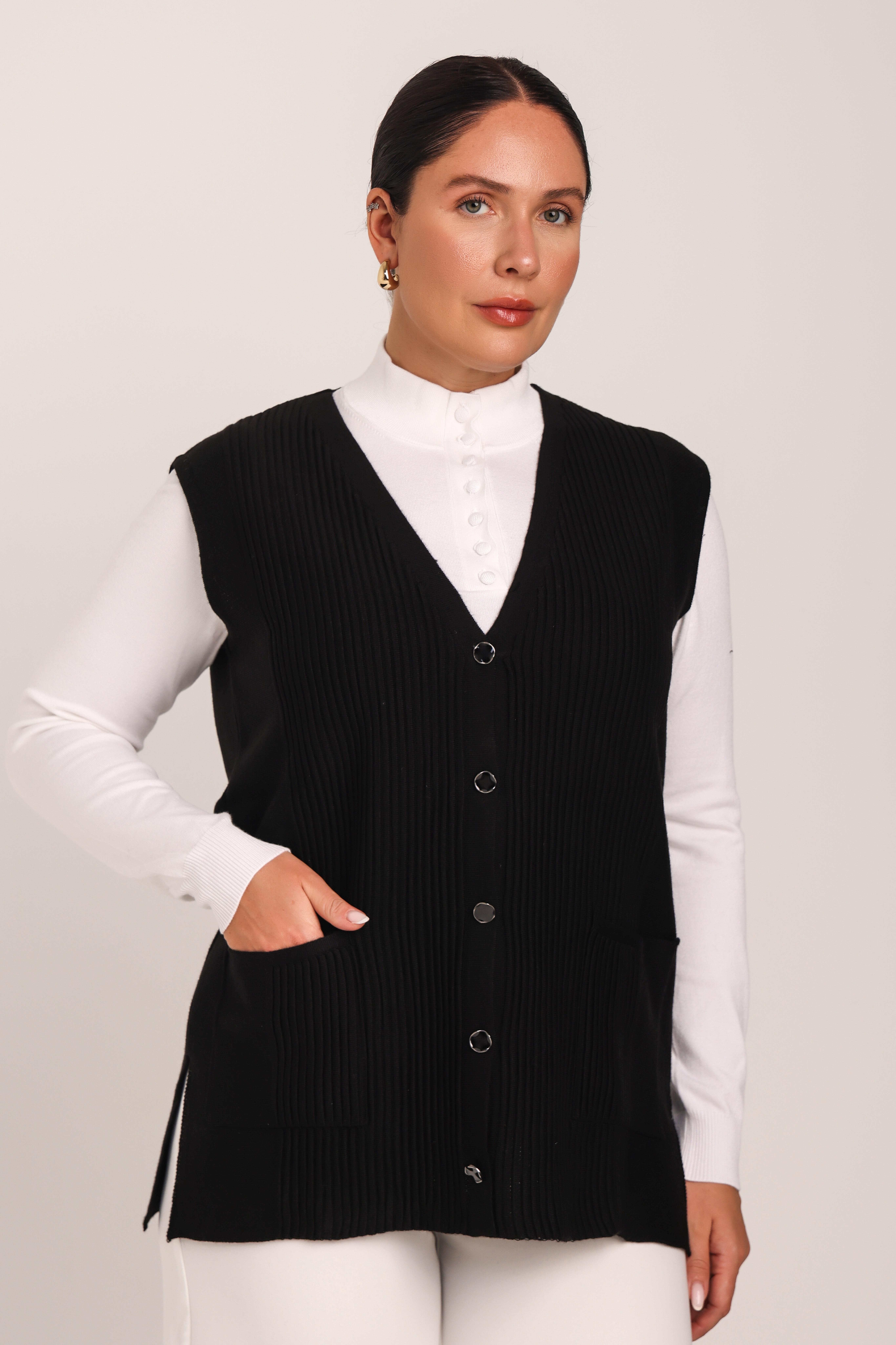 Merserize triko kumaşın zarif dantel işlemeleriyle dikkat çeken kadın yelek ürünümüz, siyah rengiyle yelek modelleri arasında öne çıkıyor. Hem günlük kullanım hem de özel günler için şık bir alternatif sunan ürünümüz, mevsimlik yelek arayanlar için ideal bir seçenek.