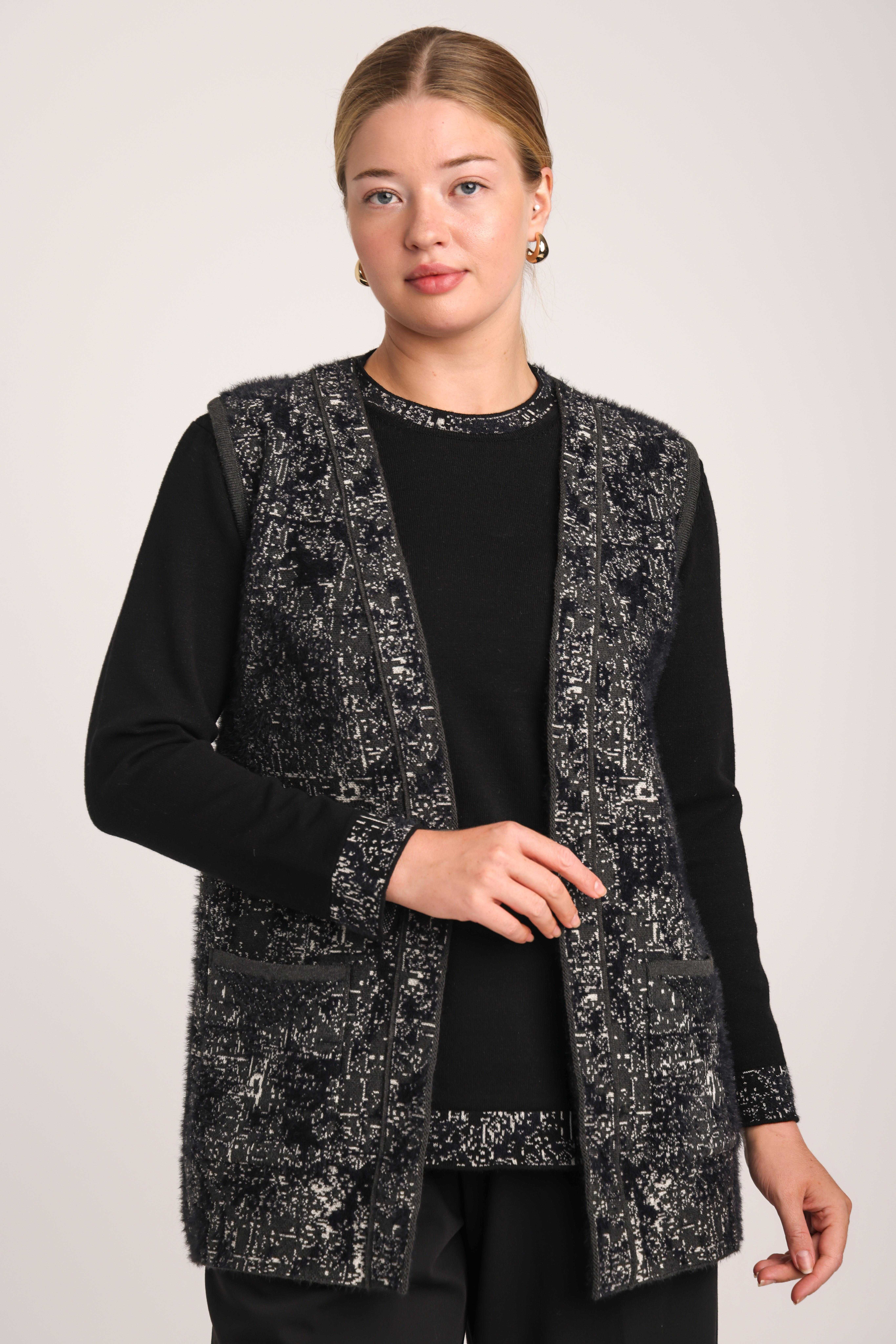 Anne yelek modelleri arasında özel bir yere sahip olan bu ürün, büyük beden yelek arayanlar için dört farklı beden seçeneği sunuyor. Kışlık yelek kategorisindeki tasarımımız, el örgüsü yelek kalitesinde bir işçilikle üretilmiştir. Kadın yelek koleksiyonlarında fark yaratan modelimiz, kışlık anne yelekleri sevenlerin beğenisini kazanıyor. Bayan yelek modelleri arasında öne çıkar ve kolsuz yelek özelliğiyle pratik bir kullanım sunar. Çelik örgü yelek tasarımıyla anne hediye arayanlar için de anlamlı bir seçenek oluşturuyor. Ev yelek olarak da rahatlıkla kullanılabilen ürünümüz, çelik örme tekniği sayesinde uzun ömürlü bir kullanım vaat ediyor. Çizgi detayları ve cepli tasarımıyla hem şık hem de fonksiyoneldir ve soğuk kış günlerinde gardırobunuzun vazgeçilmez parçalarından biri olacak.