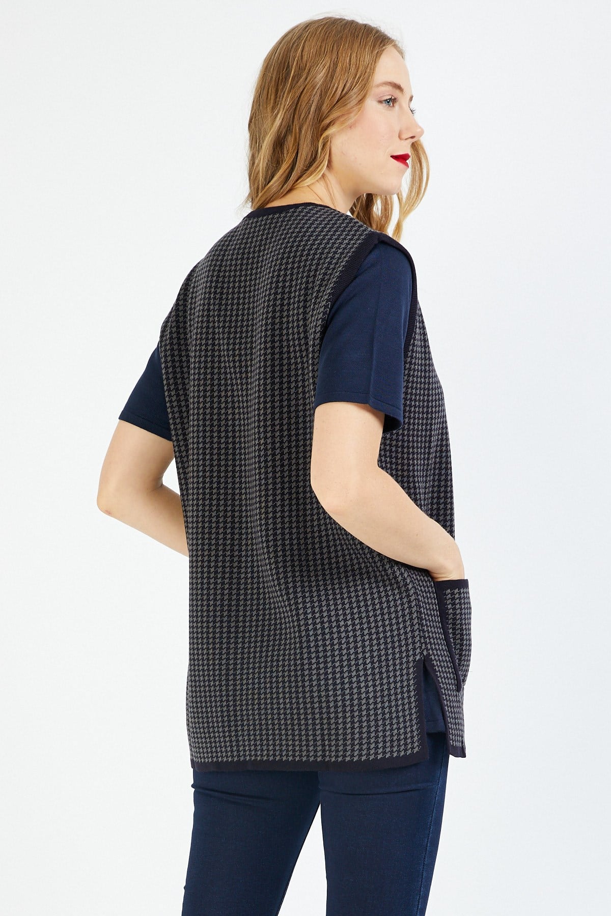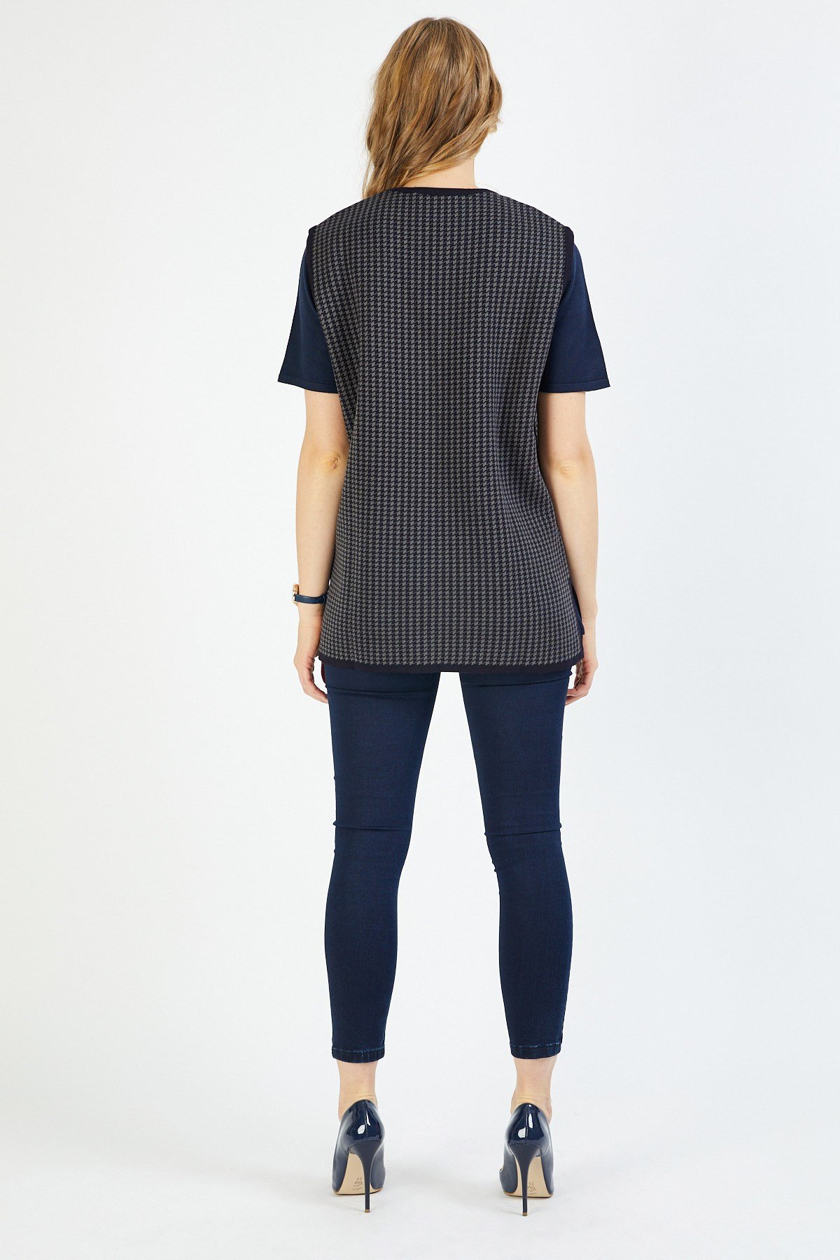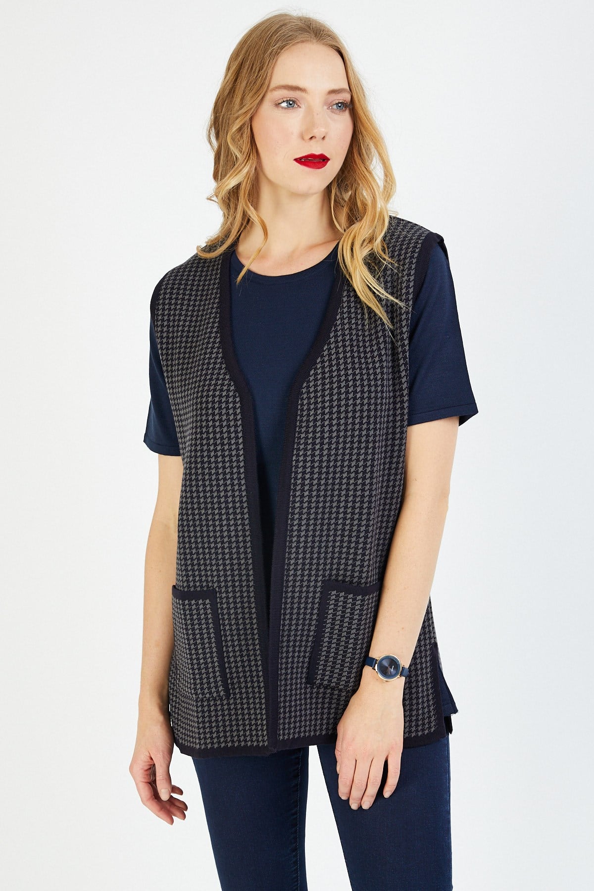 Bu yelek, ağır ve sade modeliyle özgün bir duruşa sahiptir. Şıklığı ve tasarımıyla öne çıkmaktadır. Kazayağı deseni modeline sahiptir. Ürün gündelik, iş hayatı ya da özel günleriniz için uygun bir kullanıma sahiptir. Doğru kombinlerle dilediğiniz yer ve zamanda kullanabilir ve bu şık yelek modeline dolabınızda yer verebilirsiniz.