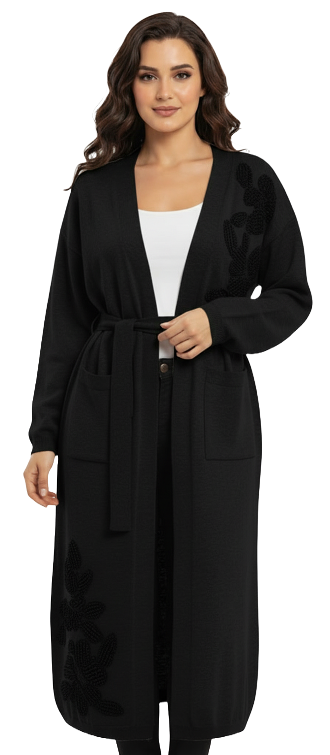 Mevsim geçişlerinde şıklığı ve işlevselliği bir arada sunan bu kimono panço, zarif çiçek nakışları ve kemerli tasarımıyla dikkat çekiyor. Panço modelleri arasında öne çıkan bu ürün, kadın kimono sevenler için özel olarak tasarlandı.
